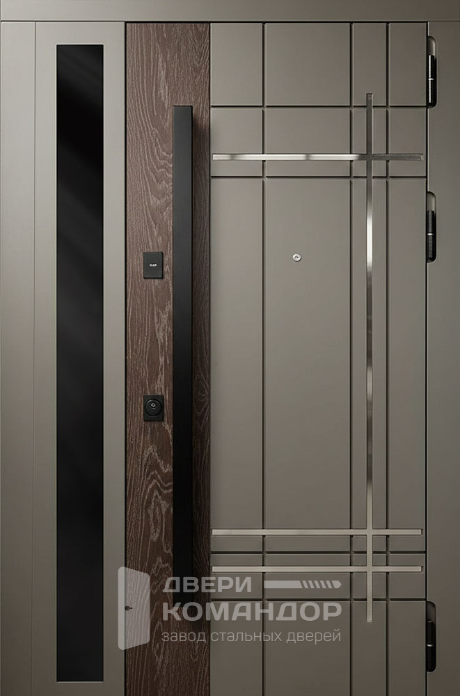 Железная дверь грейж с хром-линиями стеклом и вставкой венге №63