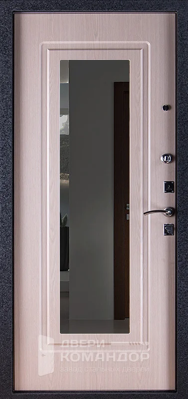 Входная дверь белая внутри с зеркалом №43 размером 860x2050 мм