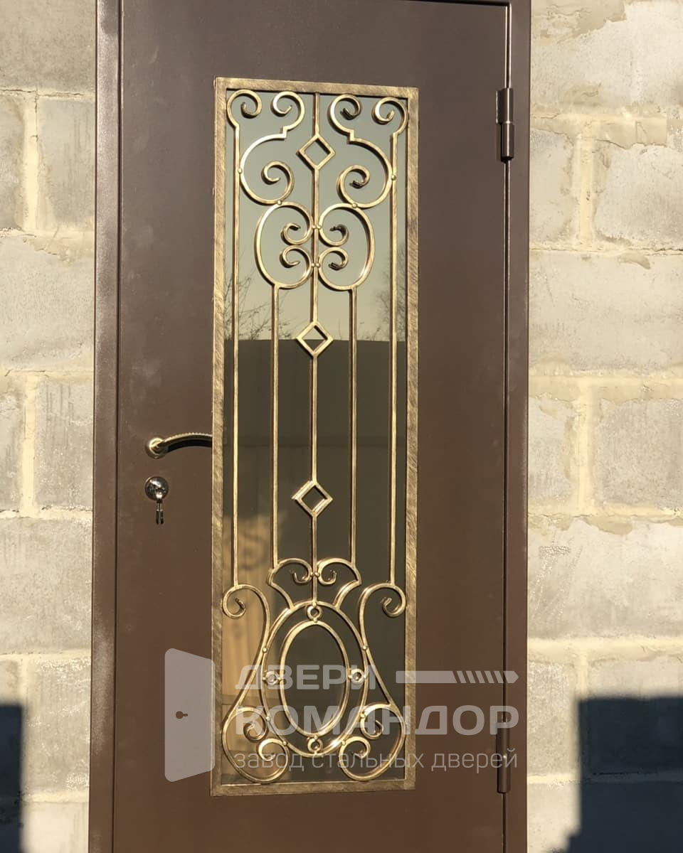 Дверь входная металлическая утепленная с зеркалом размером 86x205 см. на заказ с доставкой и установкой по цене 59670руб. Возможно изготовить по любым индивидуальным размерам. Также возможно боковые вставки и фрамугу в стиле и цвете двери. Изменение цвета отделки и фурнитуры не влияет на стоимость.
