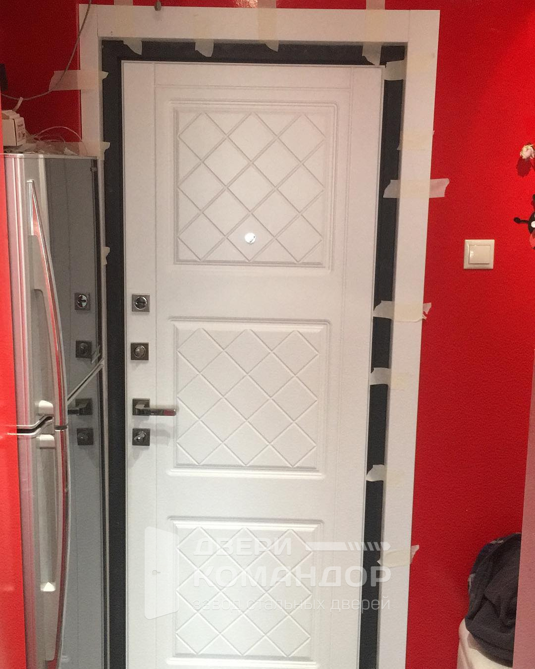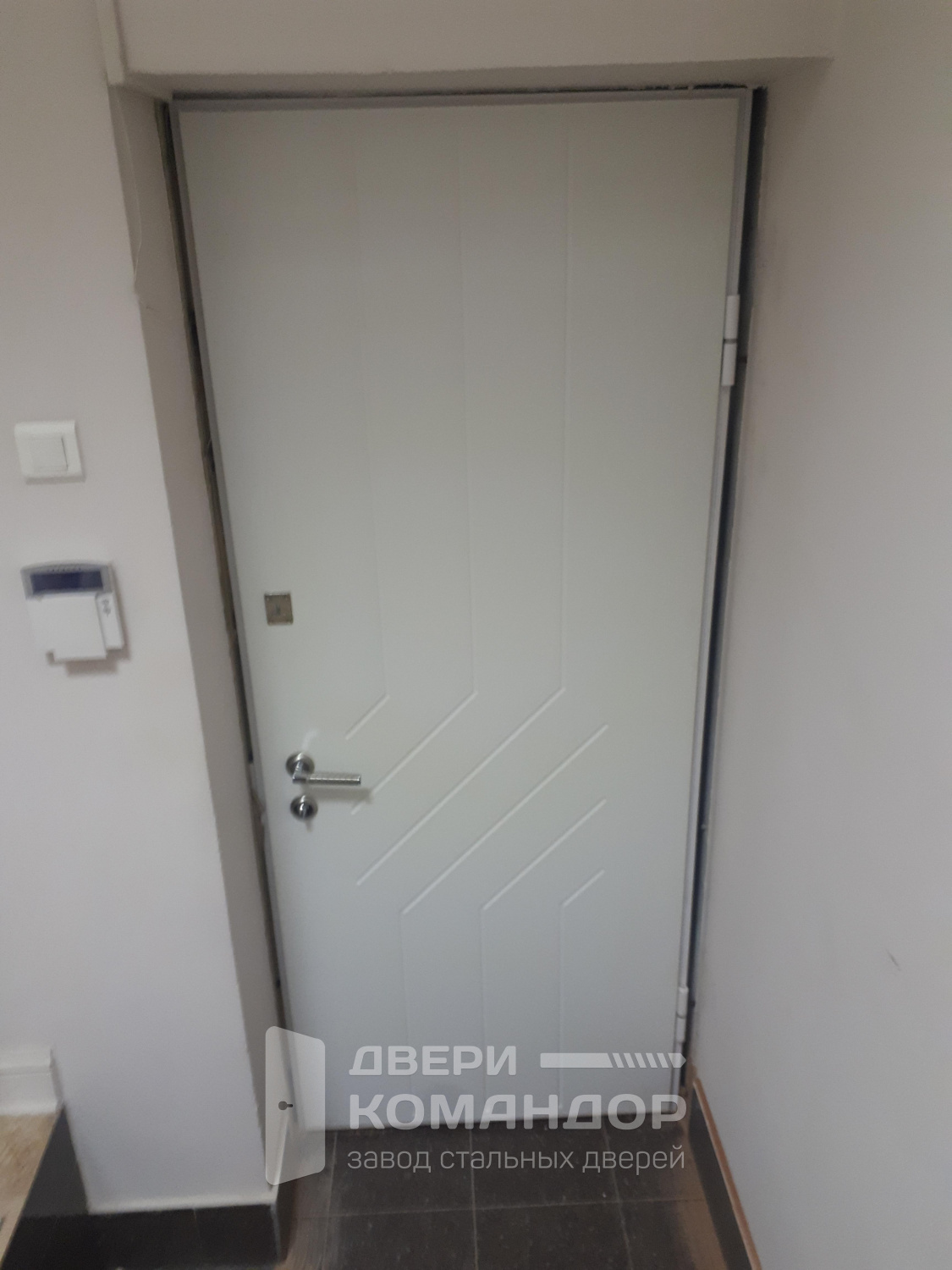 Входная белая металлическая дверь в квартиру №37