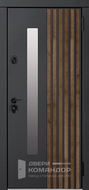 Железная дверь со стеклом уличная размером 86x205 см. на заказ с доставкой и установкой по цене 53990руб. Возможно изготовить по любым индивидуальным размерам. Также возможно боковые вставки и фрамугу в стиле и цвете двери. Изменение цвета отделки и фурнитуры не влияет на стоимость.
