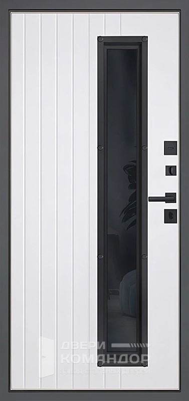 Входная дверь белая внутри с шумоизоляцией и зеркалом №7 - наружная сторона