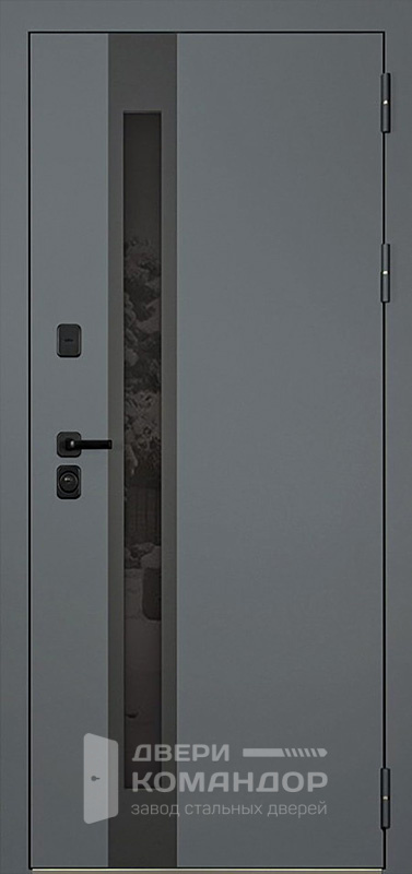 Серая входная дверь с узким стеклом в загородный дом №8