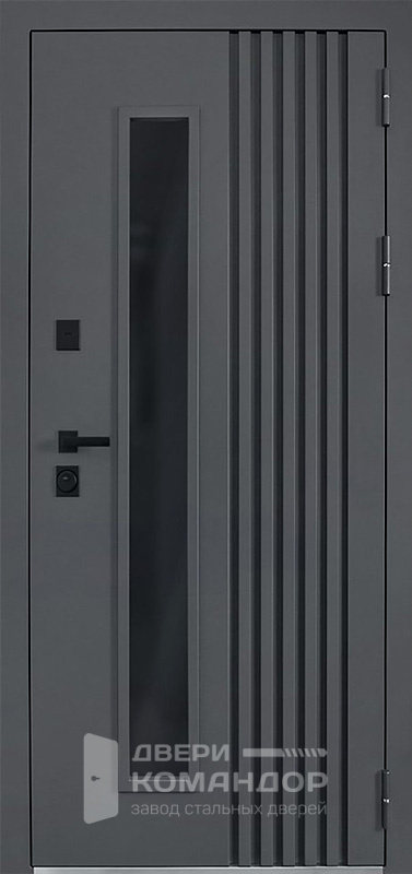 Тёмно-серая металлическая дверь со стеклопакетом в частный дом №9 - наружная сторона