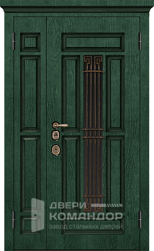 Двухстворчатая металлическая дверь зеленого цвета МДФ №39