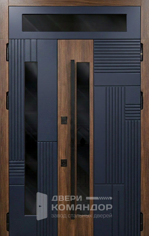 Металлическая входная дверь тёмно-синяя под дуб с остеклением №124 - наружная сторона