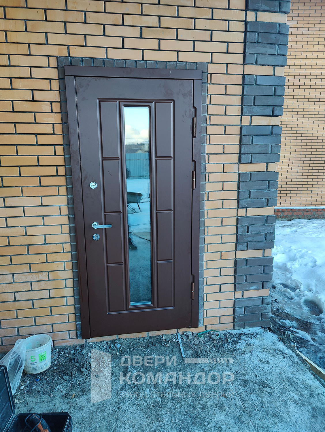Входная дверь в дом с фрамугой и бугельной ручкой №37
