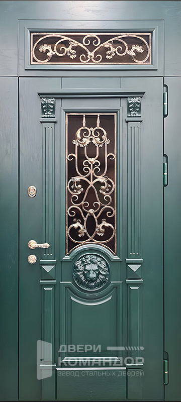 Зелёная входная дверь с элементами ковки №48
