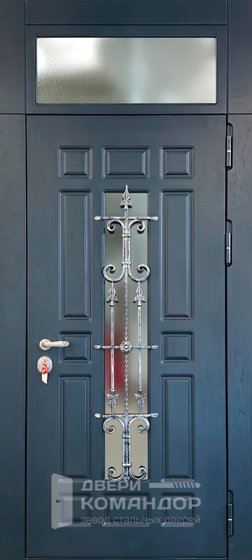 Серая дверь с ковкой и стеклопакетом №57