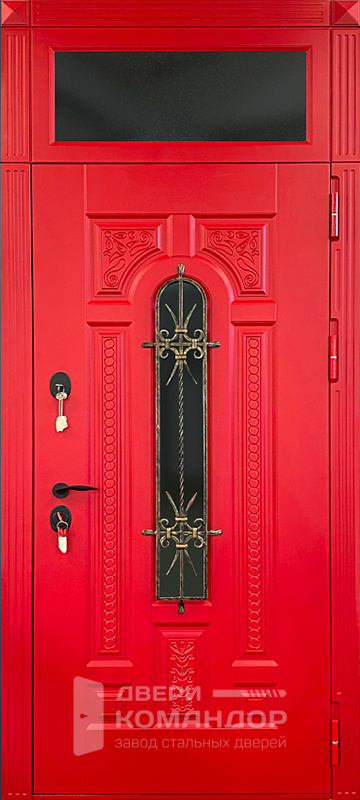 Красная дверь со вставкой сверху + ковка №59 - наружная сторона