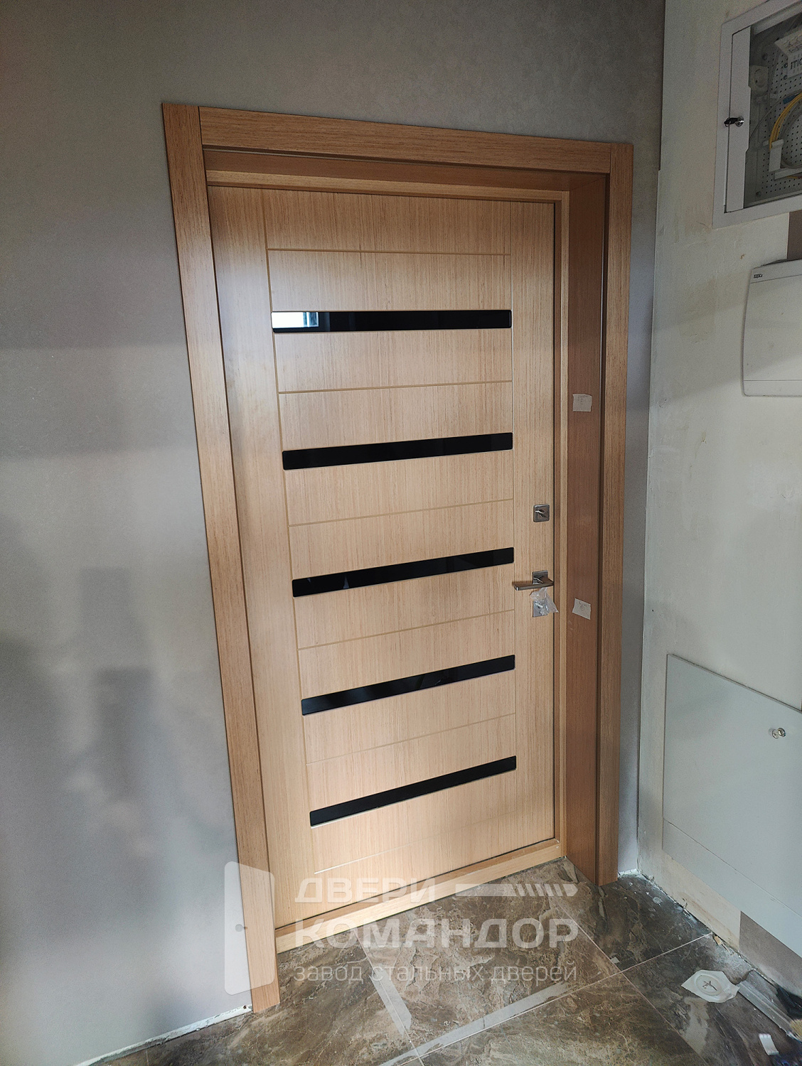 Стальная дверь МДФ с остеклённой фрамугой №66