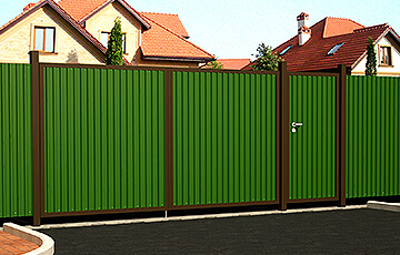 Классические распашные ворота и калитки из профнастила и металлического профиля для въезда на территорию.