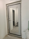 Входная дверь для квартиры, где важны тишина и порядок. Снаружи — прочная порошковая шагрень глубокого коричневого цвета: фактура скрывает следы касаний, спокойно переносит влажную уборку и не выгорает в подъезде. Внутри — светлая МДФ-панель с большим зеркалом во весь рост: визуально расширяет узкий коридор, помогает собраться перед выходом и легко моется. Ровная посадка полотна, двойной контур уплотнения и массивные ригели создают плотное, «глухое» закрывание; на петлевой стороне — противосъёмные штыри, добавляющие спокойствия каждый день. Фурнитура собрана аккуратно: глазок на удобной высоте, утопленные накладки, плавный ход ручки. Сдержанный внешний вид и практичный интерьер — удачная, долговечная комбинация для повседневной эксплуатации.