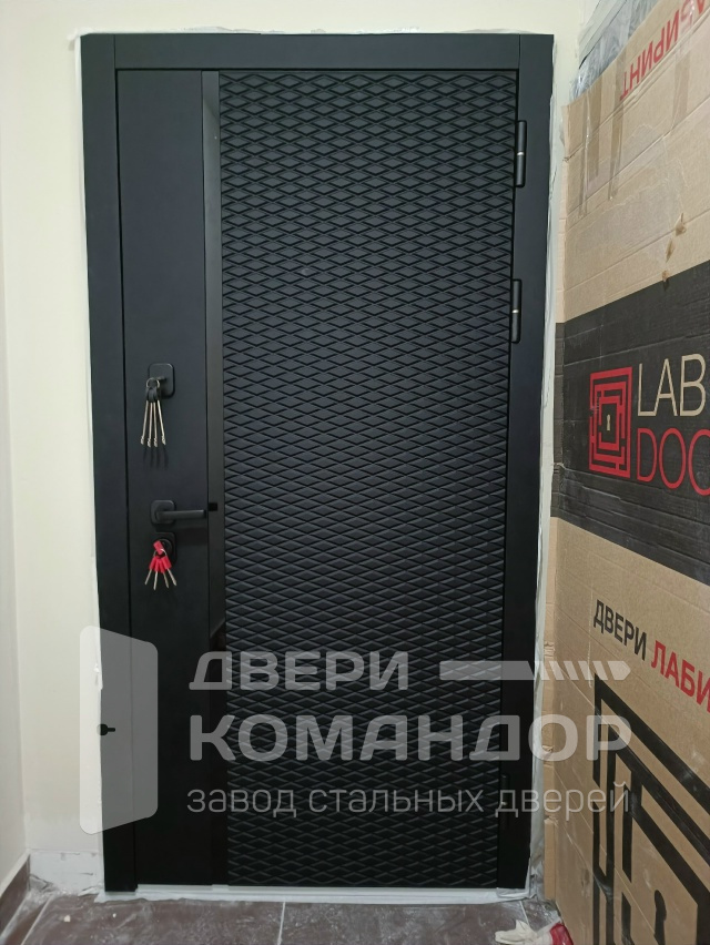 MXM-8 — дверь для квартиры, где важны порядок и стиль. Снаружи — МДФ в антраците софт с объёмной ромбовидной фрезеровкой: матовая поверхность гасит блики, фактура скрывает мелкие следы и устойчива к царапинам у лифта и на площадке. Внутри — белая МДФ с большим зеркалом Ferroni во весь рост: прихожая становится светлее и визуально шире, а утренние сборы быстрее. Чёткий притвор, добротные контуры уплотнения и раздельная фурнитура дают тихое, плотное закрывание без дребезга. Чёрные накладки замков и ручка поддерживают графичную гамму, создавая аккуратный контраст с белым полотном. Получается рациональный, но заметный вход — без лишней вычурности, зато с удобством каждый день.
