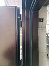 Уличная входная дверь с терморазрывом — практичное решение для частного дома: холод остаётся снаружи, внутри не собирается конденсат и не тянет от полотна. Обе стороны выполнены в стойком порошковом покрытии с легкой шагренью — такая текстура маскирует царапины, не боится осадков и солнечного света, легко отмывается после сезона грязи и пыли. Лаконичная плоскость без лишнего декора поддерживает современный фасад, а аккуратные тени кромок придают полотну собранный вид. Плотная посадка и контуры уплотнения обеспечивают мягкое закрывание и тишину в прихожей. Снаружи фурнитура выдержана в нейтральном металле — практично, не марко и уместно в любой архитектуре. В итоге это надёжная дверь для постоянной эксплуатации на улице: с тёплой конструкцией, долговечной окраской и спокойным, «дорогим» характером без показной яркости.