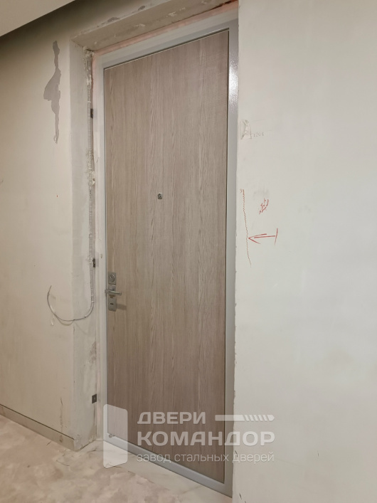В городскую квартиру с узким тамбуром эта дверь заходит без конфликтов со стенами и соседями: полотно открывается внутрь, ход мягкий, притвор плотный. Снаружи — светлый древесный оттенок с неброской текстурой, аккуратный глазок и строгая геометрия фурнитуры; внутри — чистый матовый белый, который визуально добавляет света прихожей. У Stardis Expert внутреннего открывания продумана безопасность: два раздельных замка, массивные навесы и противосъёмные штыри на петлевой стороне. МДФ-панели с обеих сторон практичны для ежедневной эксплуатации — устойчивы к мелким царапинам, легко моются, не боятся бытововой химии. Короб и кромки выполнены в единой светлой гамме, так что дверь выглядит собранной и аккуратной уже на этапе черновой отделки.