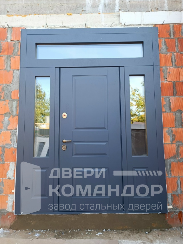 Stardis Termo — солидный входной комплект для частного дома: основное полотно и узкие боковые фрамуги со стеклопакетами плюс верхний свет дают много дневного света и визуально расширяют проём. Внешняя сторона — МДФ с аккуратной фрезеровкой и стойким покрытием: не боится мелких царапин, легко моется, сохраняет цвет на солнце; внутри — белая МДФ-панель, добавляющая свет и порядок в прихожей. Терморазрыв в конструкции разрывает мост холода, снижает риск конденсата и промерзания зимой. Узкие вертикальные вставки стекла работают как «глаз» дома, при этом сохраняют приватность. Многозапорная система и массивная коробка внушают спокойствие, а аккуратная фирменная отбортовка STARDIS и латунная фурнитура подчёркивают статус. Получается дверь, которая встречает мягким светом, а защищает по-взрослому.