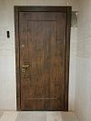 Stardis Trend — дверь для квартиры с аккуратным расширением проёма: порталом в тон наружной отделки, чтобы вход выглядел цельно и «дорого». Снаружи — тёплая древесная фактура МДФ с тонкими фрезами по периметру; она устойчиво переносит повседневные касания, не боится влажной уборки и мелких царапин, не теряет цвет под светом в подъезде. Изнутри — глубокий матовый синий с диагональной 3D-фрезеровкой: рельеф визуально вытягивает полотно и добавляет динамики прихожей. Фурнитура в тёплом металле ложится в ладонь и подчёркивает контраст двух отделок. Два разнесённых замка работают мягко; изнутри — удобная «ночная» задвижка. Контуры уплотнения по периметру гасят звук и запахи с лестничной клетки, дверь закрывается плотно и бесшумно.