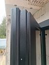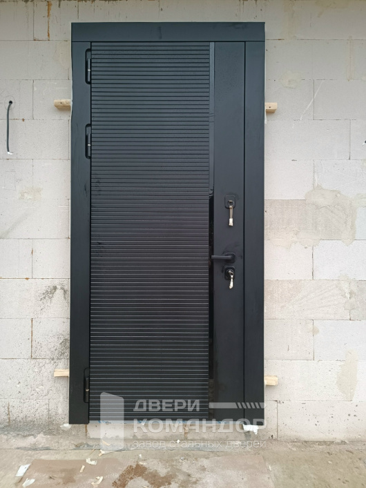 Тёплая входная дверь для частного дома: снаружи строгая эмаль на влагостойкой МДФ с горизонтальным рифлением — практичная поверхность не боится повседневных касаний, легко очищается и визуально скрывает мелкие следы погоды. Внутри — полноформатное зеркало в тонкой матовой раме: удобно собрать образ перед выходом и визуально расширить прихожую. Конструкция с терморазрывом разрывает холодный контур, снижая риск промерзания и конденсата, а плотные контуры уплотнения и многоточечное запирание дают мягкое, тихое закрывание и уверенную фиксацию. Лаконичная черная фурнитура поддерживает архитектурный стиль фасада и не спорит с интерьером.