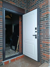 «Панцирь Термо» — спокойная классика, созданная для частного дома и уличной установки. Снаружи — темный, почти графитовый кессонный рисунок на прочной панели: выглядит солидно и не боится повседневных следов эксплуатации. Внутри — светлая МДФ-накладка с аккуратной фрезеровкой: чисто, современно, легко поддерживать порядок. Терморазрыв в конструкции разрывает мостики холода, поэтому ручка и откосы зимой не «плачут», а прихожая остается теплой. Двусторонняя стилистика решает сразу две задачи: фасаду — строгий характер, интерьеру — свет и визуальная легкость. Фурнитура в темном матовом исполнении на контрасте смотрится собранно и подчеркивает геометрию полотна. Надежное запирание и плотный контур уплотнения добавляют ощущение тишины и контроля каждый раз, когда дверь закрывается за вами.