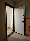 Эта дверь — про спокойный порядок в квартире и подъезде: снаружи строгая порошковая окраска тёмного тона, устойчивая к царапинам и частым прикосновениям; внутри — белая МДФ-панель с тонкой фрезеровкой, освежает коридор и легко протирается. По фото видно два разносистемных замка, глазок и плотная посадка полотна — закрывается мягко, без звона и щелей. Чёрная фурнитура подчёркивает графику белого полотна, не боится активной эксплуатации. В описании стардис комфорта уместно отметить магнитные уплотнители: они притягивают дверь ровно по контуру, тише в прихожей и меньше запахов из подъезда. Опционально подберём наличники и доборы в цвет, подготовим место под видеодомофон.