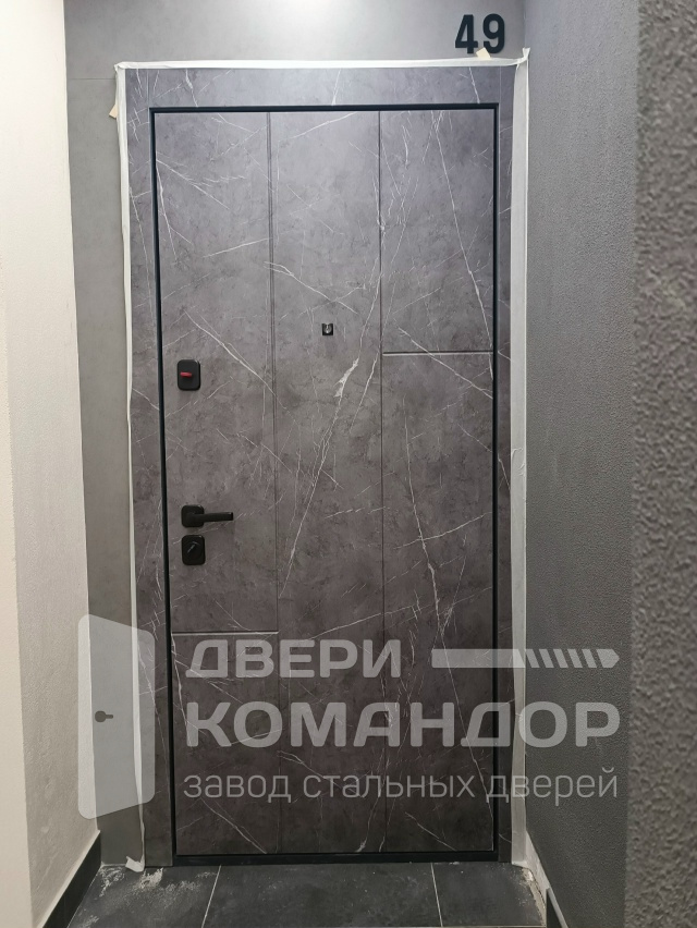 Эта входная дверь создана для квартиры или тёплого тамбура: снаружи — эффект камня с благородными прожилками и строгим темным кантом, внутри — светлая панель, которая делает прихожую просторнее. Обе стороны выполнены из МДФ с износостойким покрытием: оно стойко к мелким царапинам, легко очищается и не боится сухой уборки в подъезде. Вертикальная раскладка визуально вытягивает полотно и поддерживает современный интерьер, глазок даёт контроль пространства, а внутренняя задвижка позволяет запирать быстро и без ключа. Многоточечные ригели на фото внушают доверие: дверь плотно садится по контурu, гасит сквозняки и шум площадки. В итоге — аккуратный городской образ и практичность на каждый день, когда важны тишина, порядок и долговечность отделки.