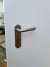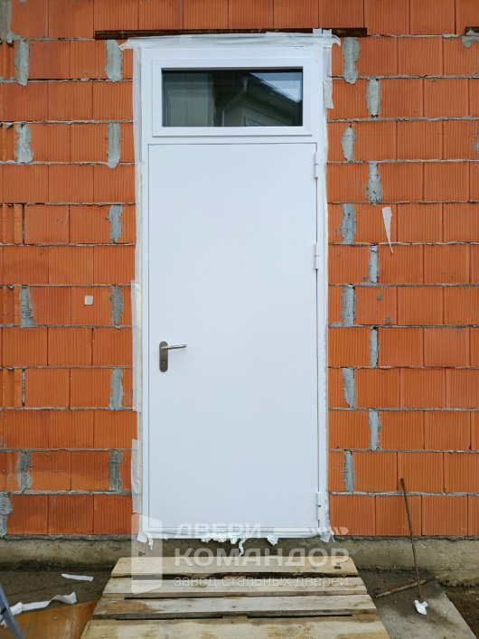 Эта дверь создана для наружных и общественных входов: в частный дом, технический выход, тамбур небольшой компании. Снаружи — чистая белая плоскость с аккуратной рычажной ручкой; внутри — горизонтальная штанга антипаника, чтобы открыть одним нажатием даже с занятыми руками. Верхняя фрамуга со стеклопакетом даёт естественный свет и не «давит» при высокой проёме. Порошковое термонапыление стойко к царапинам, влаге и выгоранию, легко отмывается после сезона грязи. У входной противопожарной двери с терморазрывом металл/металл, с фрамугой со стеклопакетом и ручкой антипаника на заказ магнитные уплотнители притягивают полотно без щелей — меньше сквозняков и шума, комфорт заметен сразу.